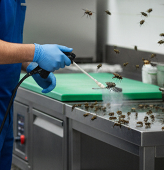 Applichiamo insetticidi a nebulizzazione ULV (Ultra Low Volume) per eliminare le mosche adulte e ridurre immediatamente la popolazione.